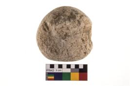 | Description / विवरण | A partially broken specimen of roughly round shaped hammer stone with battered periphery along with the circumference. |