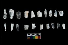 | Description / विवरण | The total number of specimens are n 20 of chert. They bladets with marginal retouch and backet bladets. The blades have a flat dorsal surface, and double ridges going parallel to its length. Some of the microliths have steep retouch at their tip. the specimens show low proportions. |