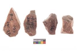 | Description / विवरण | Four worked utilised flakes. Many a times tapering at one end. |