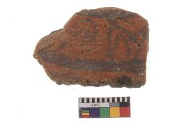 | Description / विवरण | Specimen of black on red ware with black decorative Animal and human motifs nature painting. |