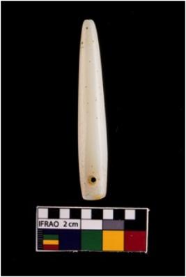 | Description / विवरण | The object is a pendent made of Felsper. The object is complete in condition. The object has perforation on the Butt-End. |