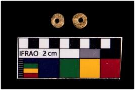 | Description / विवरण | The object are beads. The material is Paste. It was found at the site of Bagor in Rajashtan. There are banded marks on the beads. One of the bead is broken partially on the top portion. There are total number of 2 beads. |