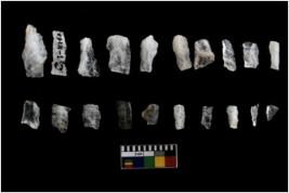 | Description / विवरण | The total number of specimens are n 20 of Quartz. The blades have a flat dorsal surface, and double ridges going parallel to its length. Some of the microliths have steep retouch at their tip. |