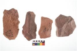 | Description / विवरण | Four worked utilised flakes. Many a times tapering at one end. |
