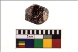 | Description / विवरण | A complete specimen of a gemstone garnet with bevelled sides and with an octagonal cross-section, smooth surface and browinish red in colour. |