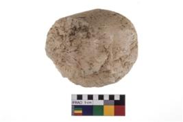 | Description / विवरण | A partially broken specimen of roughly round shaped hammer stone with battered periphery along with the circumference. |