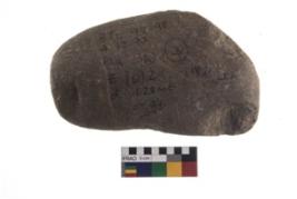 | Description / विवरण | Complete specimen of an oval shaped muller section with polished surface rounded end along with holding ends made up from Sandstone |
