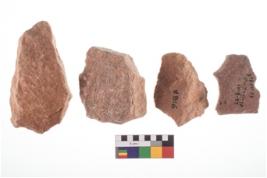 | Description / विवरण | Four worked utilised flakes. Many a times tapering at one end. |