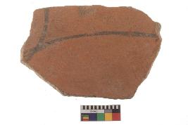 | Description / विवरण | Specimen of black on red ware with black decorative Joint curves geometric painting. |