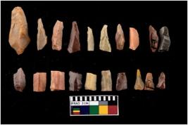 | Description / विवरण | There 21 no. of blades of material chert. Some of them are points. All the blades are retouched and having sharp edges. |