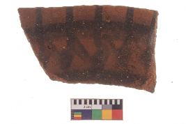 | Description / विवरण | Specimen of red ware with decorative black pigment. |