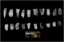 | Description / विवरण | The total number of specimens are n 20 of Quartz. The blades have a flat dorsal surface, and double ridges going parallel to its length. Some of the microliths have steep retouch at their tip. |