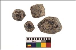 | Description / विवरण | A complete specimens n-4 of a gemstone garnet with bevelled sides and with an octagonal cross-section, rough surface and black-browinish, reddish in colour. |