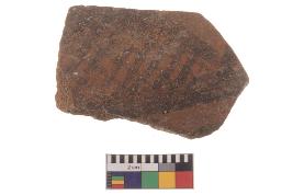 | Description / विवरण | Specimen of black on red ware with black decorative Lattice triangles geometric painting. |