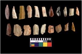 | Description / विवरण | There 20 no. of blades of material chert. Some of them are points. All the blades are retouched and having sharp edges. |