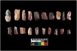 | Description / विवरण | The total number of specimens are n 20 of chert. The blades have a flat dorsal surface, and double rigdes going parallel to its length. Some of the microliths have steep retouch at their tip. |