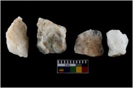 | Description / विवरण | There are n-4 of intact utilized flakes made up of Quartz. Some of them have bulge of percussion and some are flat flakes. |