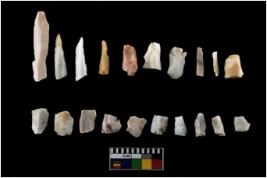 | Description / विवरण | The total number of specimens are n 20 of chert. The blades have a flat dorsal surface, and double rigdes going parallel to its length. Some of the microliths have steep retouch at their tip. |