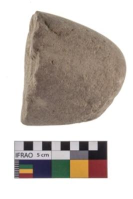 | Description / विवरण | A partially broken specimen of a oval shaped muller stone with oval section. |