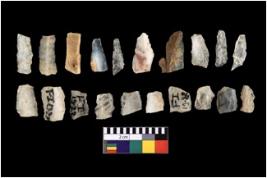 | Description / विवरण | There 20 no. of blades of material quartz. Some of them are points. All the blades are retouched and having sharp edges. |