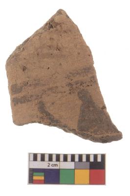 | Description / विवरण | Specimen of black on red ware with black decorative Joint triangles geometric painting. |