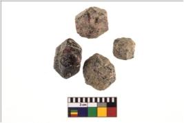 | Description / विवरण | A complete specimens n-4 of a gemstone garnet with beveled sides and with an octagonal cross-section, rough surface. It is black-brownish, reddish in colour. |