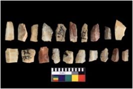 | Description / विवरण | There 20 no. of blades of material chert. Some of them are points. All the blades are retouched and having sharp edges. |