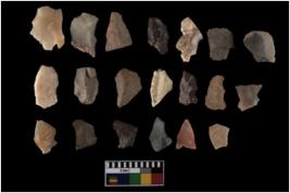 | Description / विवरण | There are n-20 of intact flake cores made up of chert. Some of them have bulge of percussion and some are flat flakes. |