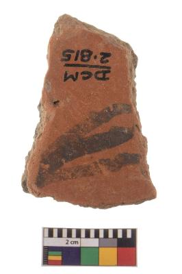 | Description / विवरण | Specimen of black on red ware with black decorative Line intersecting triangle geometric painting. |