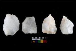| Description / विवरण | There are n-4 of intact utilized flakes made up of Quartz. Some of them have bulge of percussion and some are flat flakes. |