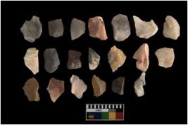 | Description / विवरण | There are n-20 of intact flake cores made up of chert. Some of them have bulge of percussion and some are flat flakes. |