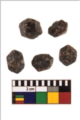 | Description / विवरण | A n-5 specimens of micacious matrix gemstone garnet amongst them n-2 are complete and with bevelled sides, with an octagonal cross-section and n-3 are partially broken and with bevelled sides. All the specimens are smooth in texture and having blackish-brownish colour with mica contents in it. |