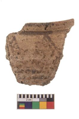 | Description / विवरण | Specimen of black on red ware with black decorative Joint lattice triangles geometric painting. |