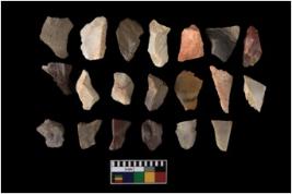 | Description / विवरण | There are n-20 of intact flake cores made up of chert. Some of them have bulge of percussion and some are flat flakes. |