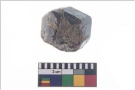 | Description / विवरण | A partially broken specimen of a gemstone garnet with bevelled sides and hexagonal cross-section. It is having rough surface and brownish-reddish in colour. |
