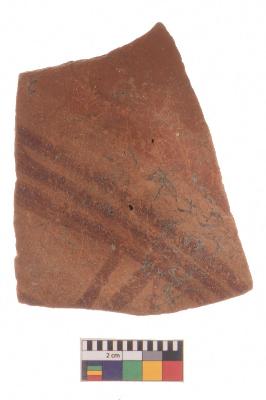 | Description / विवरण | Specimen of red ware with decorative red pigment. |
