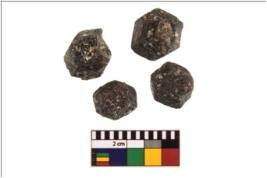 | Description / विवरण | A n-4 complete specimens of micacious matrix gemstone garnet with bevelled sides and with a hexagonal cross-section. All the specimens are smooth in texture and having blackish-brownish colour with mica contents in it. |