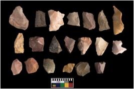| Description / विवरण | There are n-20 of intact flake cores made up of chert. Some of them have bulge of percussion and some are flat flakes. |