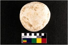 | Description / विवरण | A complete specimen of circular shaped muller with flat ends. It bear pitted battering marks on surface, also having battered periphery along the circumference. It is rough in texture. It is made up of quartz. |
