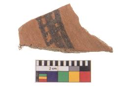 | Description / विवरण | Specimen of black on red ware with black decorative Cheques pattern geometric painting. |