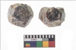 | Description / विवरण | A partially broken specimens n-2 of a gemstone garnet with bevelled sides and hexagonal cross-section. It is having rough surface and brownish-reddish in colour. |