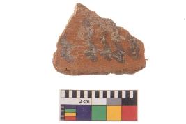 | Description / विवरण | Specimen of black on red ware with black decorative Criss cross lines geometric painting. |