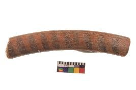 | Description / विवरण | Specimen of black on red ware with black decorative Parallel horizontal lines on rim geometric painting. |