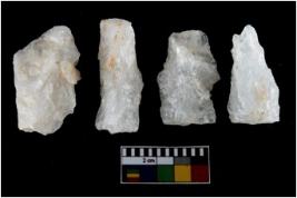 | Description / विवरण | There are n-4 of intact utilized flakes made up of Quartz. Some of them have bulge of percussion and some are flat flakes. |