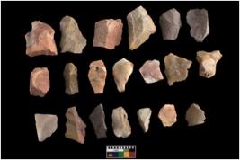 | Description / विवरण | There are n-20 of intact flake cores made up of chert. Some of them have bulge of percussion and some are flat flakes. |