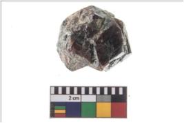 | Description / विवरण | A partially broken oblong shaped specimen of a gemstone garnet with bevelled sides and hexagonal cross-section. It is having rough surface and brownish-reddish in colour. |