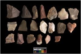 | Description / विवरण | There are n-20 of intact flake cores made up of chert. Some of them have bulge of percussion and some are flat flakes. |