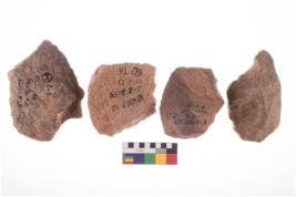 | Description / विवरण | Four worked utilised flakes. Many a times tapering and pointed at one end. |