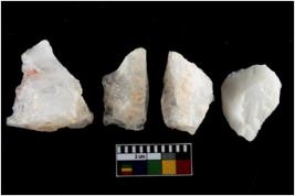 | Description / विवरण | There are n-4 of intact utilized flakes made up of Quartz. Some of them have bulge of percussion and some are flat flakes. |