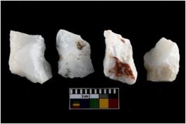 | Description / विवरण | There are n-4 of intact utilized flakes made up of Quartz. Some of them have bulge of percussion and some are flat flakes. |